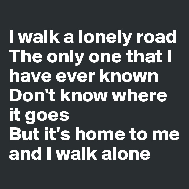 I Walk A Lonely Road | I Walk A Lonely Road The Only One That I Have Ever Known Don T Know Where It Goes But It S Home To Me And I Walk Alone Post By Swatchusa On